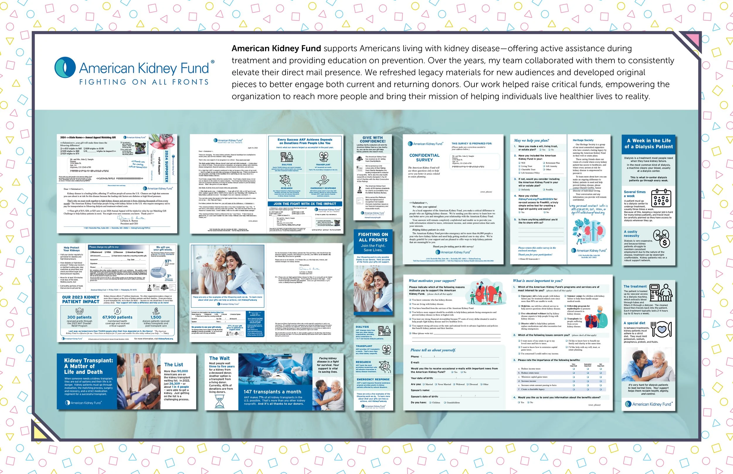 In 2021, Brigham & Women’s Hospital underwent a brand transition, and I had the privilege of serving as the lead designer. We completely revamped their visual identity, both in direct mail and digital campaigns, collaborating closely with them to create a modern, trustworthy image. Over the next three years, we continued to strengthen their reputation with engaging and impactful mail deliverables.